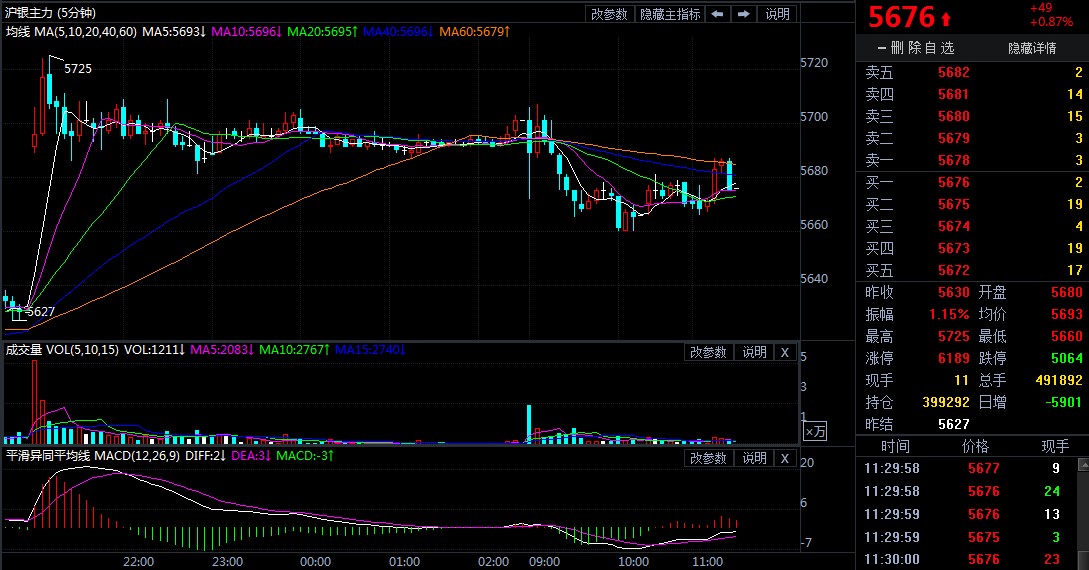 大宗商品资讯网站今日行情料维持区间震荡6月7日白银期货最新行情,今日邦内白银期货价值开于5680元千克,目前最高上探至5725元千克,最低触及5660元千克,截至午间收盘报5676元千克,涨幅0.87%。今日行情料坚持区间颠簸。