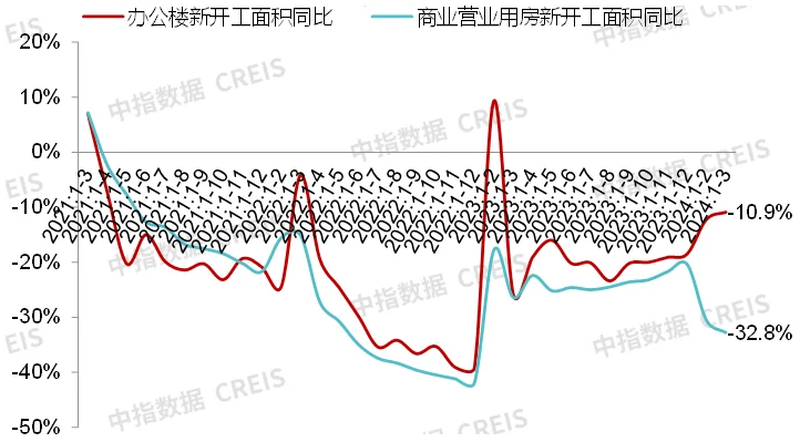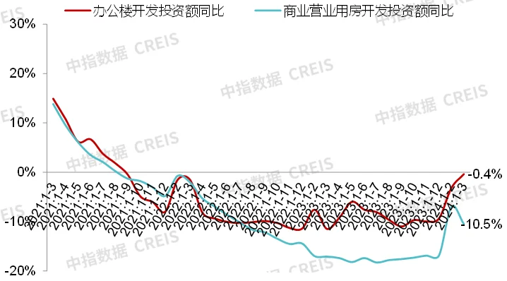 1.投资开工:2024年一季度,办公楼投资、开工同比降幅均收窄;贸易业务用房投资、开工同比降幅均增加