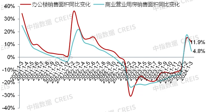 办公楼:2024年一季度,世界办公楼出售面积为581万平方米,同比增加11.9%,增幅较1-2月收窄3.0个百分点;3月办公楼出售面积为313万平方米,同比增加9.5%。