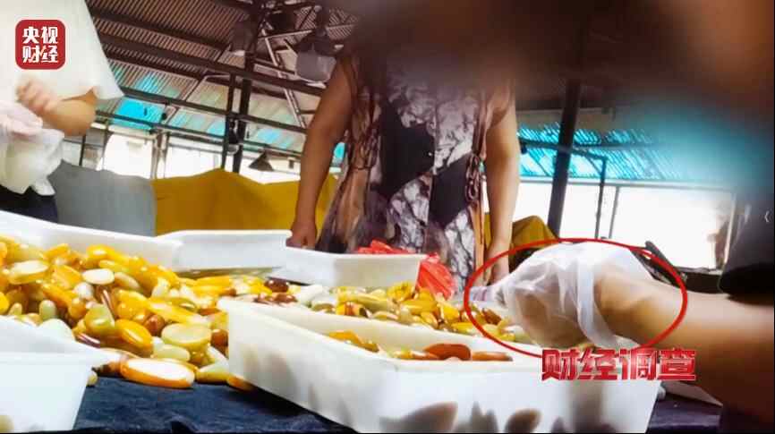 正在“榆树庄商场”的和田玉籽料批发区,记者正在众个摊位前闻到刺鼻气息,客户挑选时也都戴塑料手套。