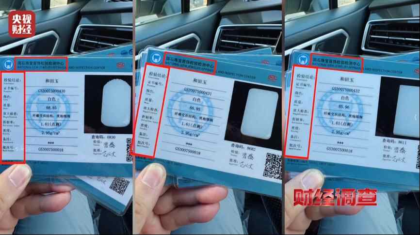 这些和田玉“判定证书”的出具机构为“邦石珠宝首饰检修检测中央”,证书上颜色、质料、折射率、密度等新闻样样俱全,扫描二维码也能显示判定实质。