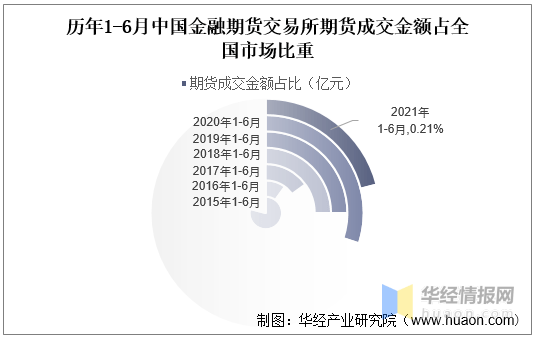2021年1-6月中邦金融期货贸易所成交金额占全邦期货商场0.21%,2020年同期成交金额占全邦期货商场0.3%,同比消沉29.71%。