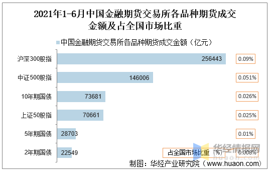 分种类来看,2021年1-6月沪深300股指成交金额为256443.27亿元,占全邦期货商场0.09%;中证500股指成交金额为146006.4亿元,占全邦期货商场0.051%;10年期邦债成交金额为73681.25亿元,占全邦期货商场0.026%;上证50股指成交金额为70661.28亿元,占全邦期货商场0.025%;5年期邦债成交金额为28702.89亿元,占全邦期货商场0.01%;2年期邦债成交金额为22549.25亿元,占全邦期货商场0.008%。