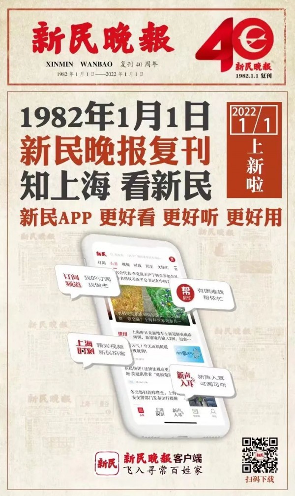 历经四十年风云,承袭“飞入寻常庶民家”的编辑宗旨,驻足上海,面向世界,放眼寰宇。以前,夜饭吃漂后夜报;现正在,一天到晚看新民。动作“新民晚报仇刊40周年系列勾当”之一,新民App迭代升级,全新上线。现正在就下载更新,速来解锁啦!