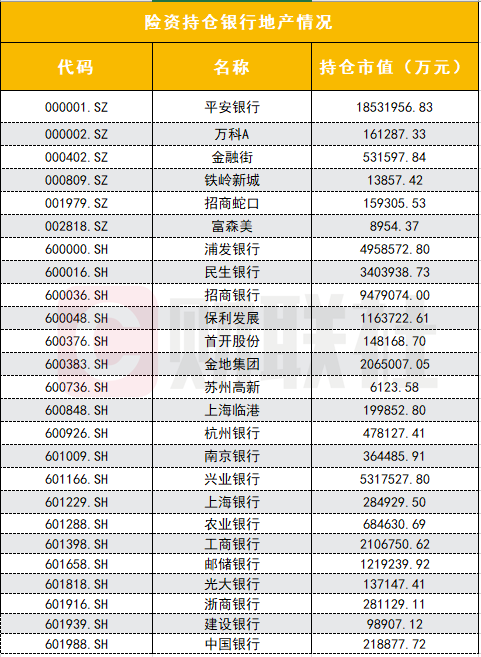 目前上市公司年报根基披露完毕。据财联社记者统计,从仍旧披露的数据来看,2021年保障资金对银行股和地产股累计持仓市值抵达5202.32亿元,持仓市值暂为险资持仓总市值的42.6%。