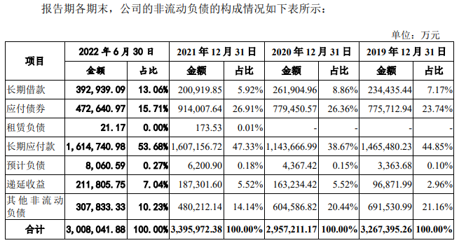 惠科股份的非活动欠债要紧由永远借债、应付债券、永远应付款、递延收益、其他非活动欠债等组成。