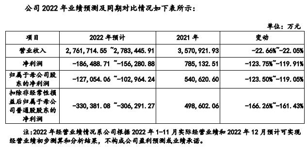 惠科股份正在审核问询函的回答中披露了2022年功绩预测。公司估计2022年将完成出售收入2,761,714.55至2,783,445.91万元,同比降低22.66%至22.05%。公司2022年业务收入的降低要紧因为受面板下逛消费需求低迷导致的面板市集代价下跌所致。因为面板代价大幅下跌,公司2022年剩余才干降低,归属于母公司净利润估计为-127,054.06至-102,964.24万元,同比降低123.50%至119.05%,扣除非时常性损益后归属于母公司广泛股股东的净利润为-330,381.08至-306,291.27万元,同比降低166.26%至161.43%。