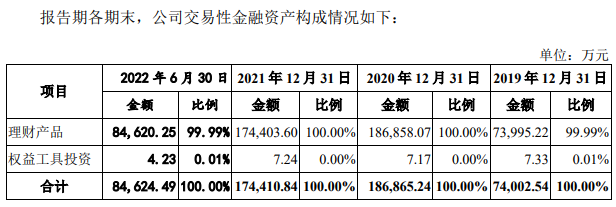 惠科股份称,公司业务性金融资产余额要紧为理物业物和权柄东西投资。公司购置的理物业物要紧为构造性存款,用于保障金质押开具银行承兑汇票、信用证等,以支拨供应商货款和工程配置款。跟着公司的谋划界限添补,2020年及2021年公司前述用处的理物业物金额较2019年增幅较大。