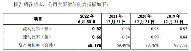惠科股份账面资金较为宽裕。截至2021年底,公司钱币资金余额为239.59亿元。从资产欠债率来看,2019年-2021年别离为97.77%、70.76%和69.49%,纵然逐年低浸,但仍清楚高于同期的TCL科技与京东方A。