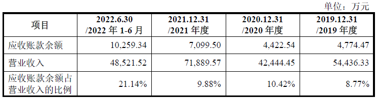 恒鑫存在应收账款金额也不息增添。2019年至2022年1-6月,公司应收账款余额区别为4,774.47万元、4,422.54万元、7,099.50万元和10,259.34万元,占当期生意收入比例区别为8.77%、10.42%、9.88%和21.14%,此中瑞幸咖啡也料思之中的成为公司“欠款”第一的客户。