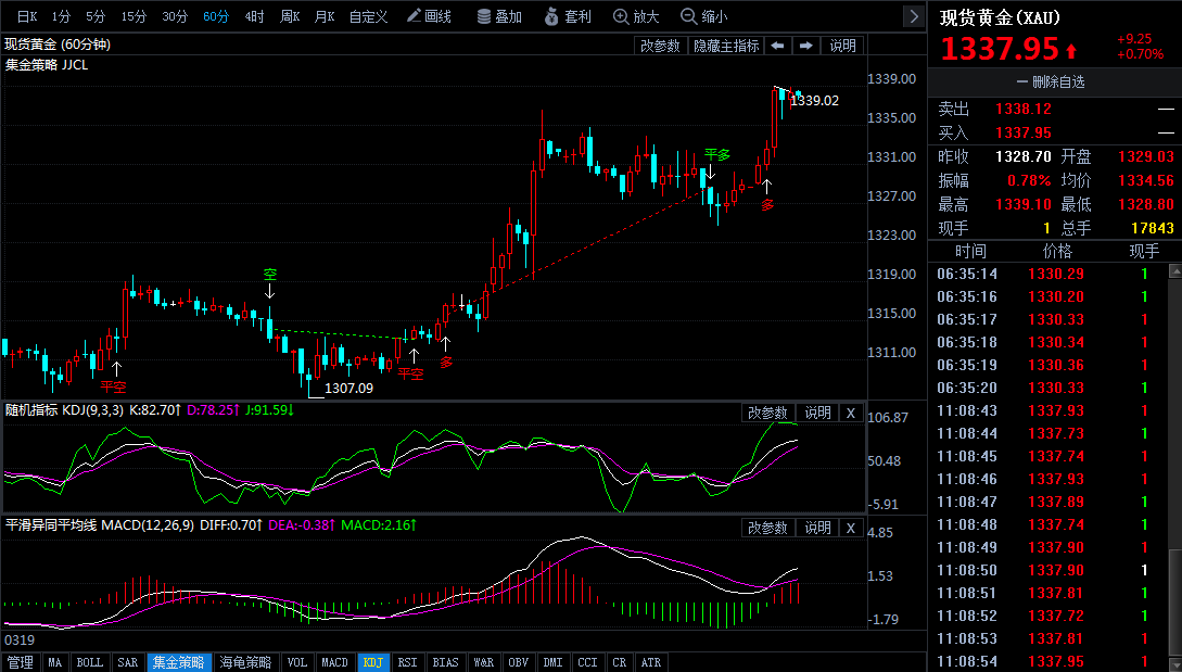 昨日(3月23日)美元的小幅反弹给金价带来必然压力,黄金小幅回落。美邦总统特朗普发表将针对中邦的合税准备后,墟市合于生意战的操心进一步升温,美股受此影响大跌,避险黄金重受青睐,今日开盘后现货黄金络续上涨,一度迫临1340合口,最高触及1339.02美元/盎司。