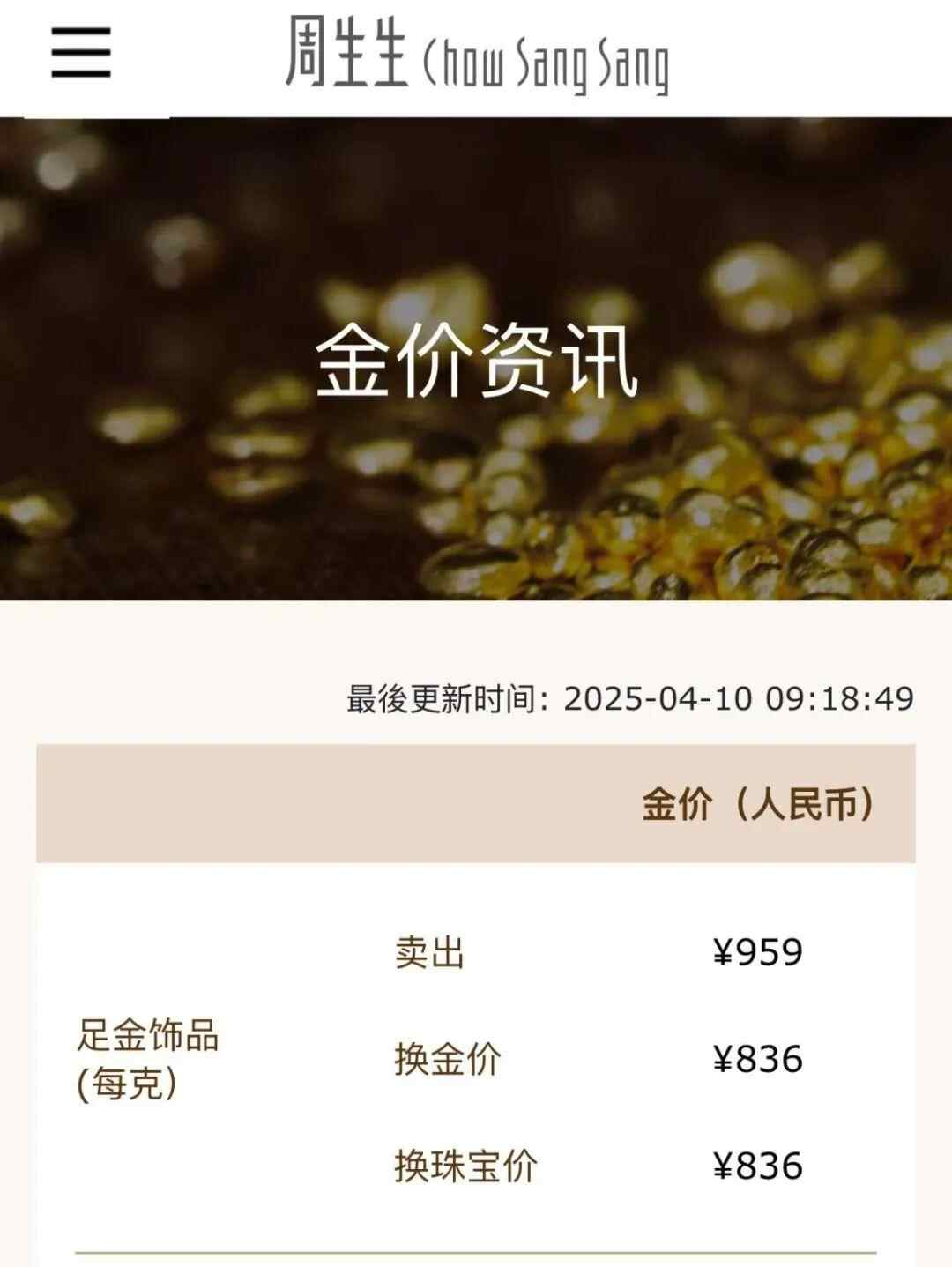 邦内品牌金饰价值也随之上扬。记者盘查呈现,4月3日从此金饰价值四连跌后又迎来三连涨。截至发稿,周生生金饰价值为959元/克,较4月7日低点上涨47元/克;老庙金饰价值为957元/克,较4月7日低点上涨39元/克;周大福金饰价值为960元/克,较4月7日低点上涨42元/克。