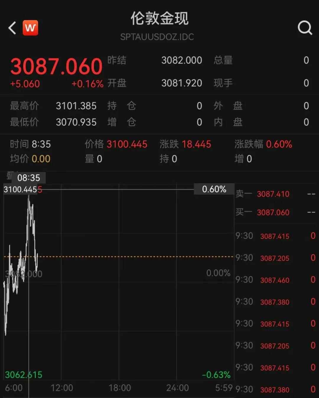 深圳一名黄金回收商表示2025年5月22日道指实时指数10日凌晨1时驾御,现货黄金涨幅推广至快要3.75%,创2020年从此最大日内涨幅,报3095.13美元/盎司。8时30分前后,现货黄金一度打破3100.00美元/盎司闭口。截至发稿,报3087.060美元/盎司。