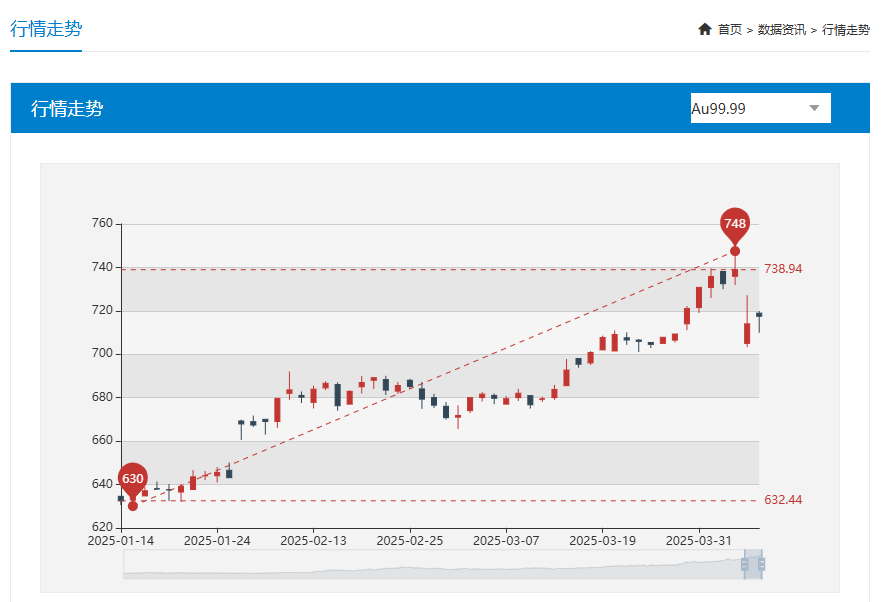 黄金接管价值要紧缠绕邦内大盘及时金价,4月3日,Au99.99价值一度攀升至747.5元/克的汗青高位。跟着金价下跌,黄金接管商也承当了必然压力。