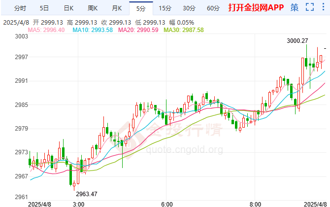 本往还日周二(4月8日)亚市盘中,现货黄金反弹走强,亲昵3000美元合口,美邦对等合税导致环球股市大跌,市集活动性需求,促使黄金遭到扔售,金价承压联贯众日下跌。总体看,黄金正在冲高之后回落,延续上周五跌势,正在众空拉锯中,空方短期吞噬上风。