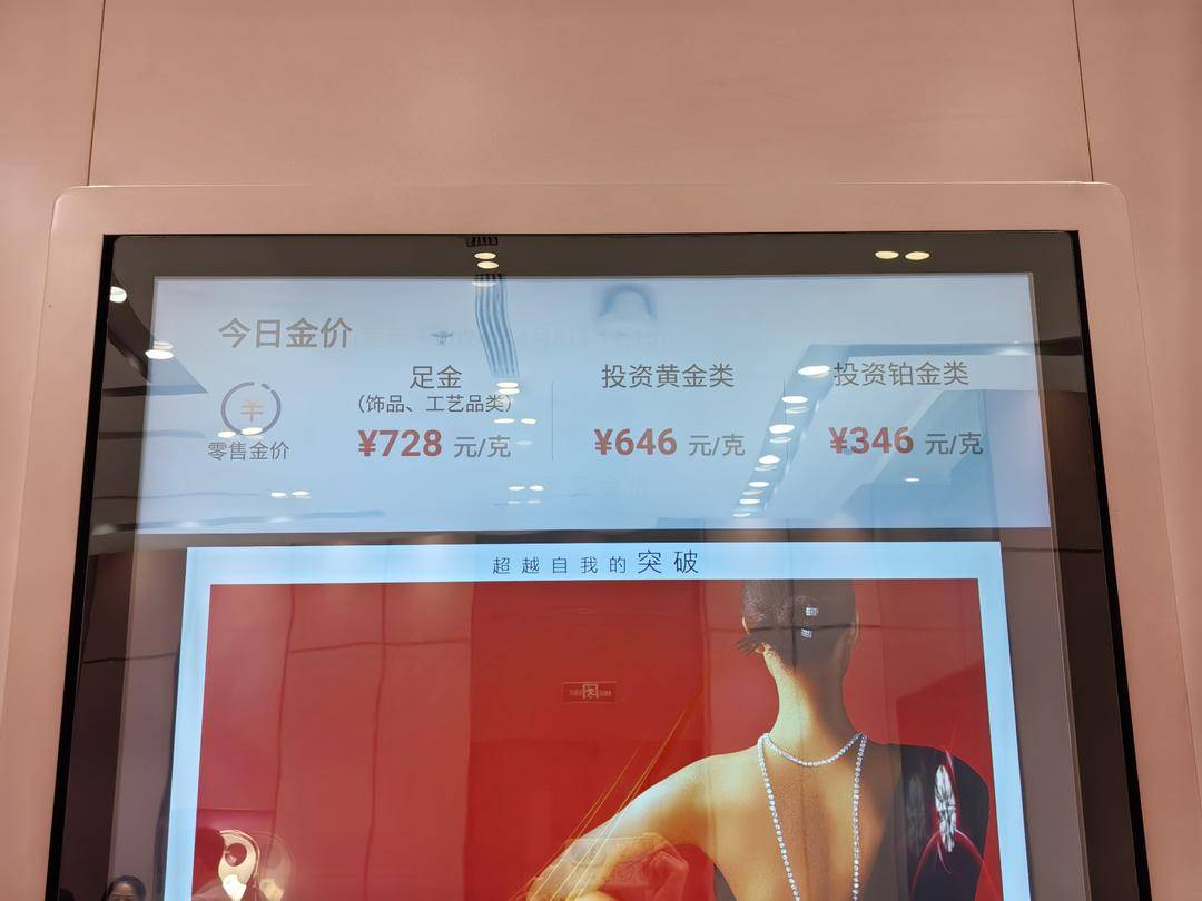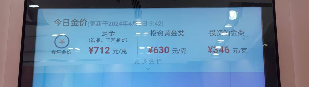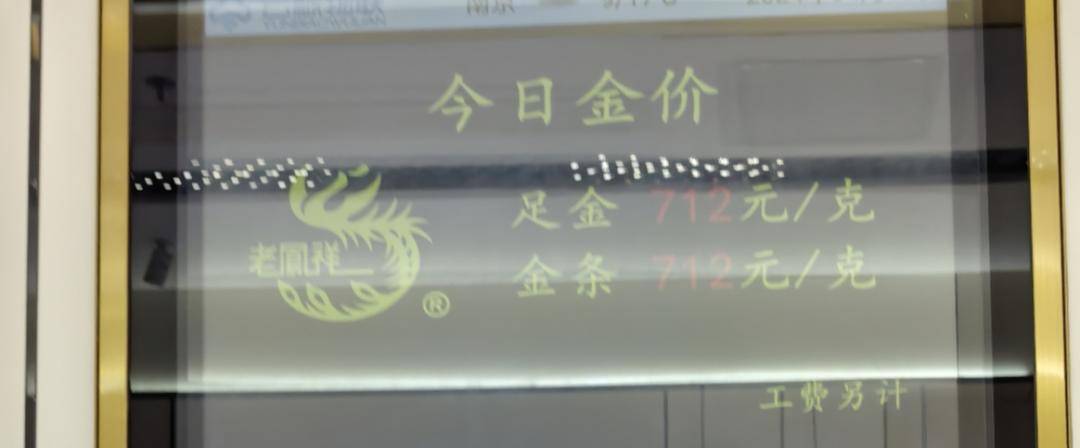 4月8日上午和下昼,扬子晚报/紫牛消息记者两次来到南京市筑邺区某阛阓内的老凤和谐周大福门店打听。上午10点众,记者看到,老凤和谐周大福门店的“今日金价”的足金售价均为712元/克。