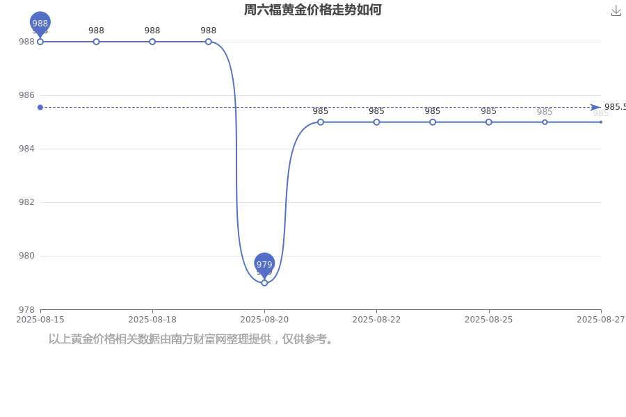 念领会今日黄金价值,目前黄金一克的代价是众少呀?黄金每一克的价位或者是众少呢?今日周六福黄金价值为985.0元/克。