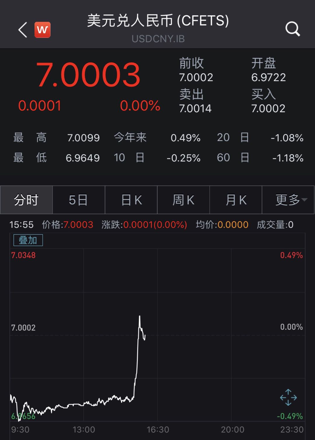 在岸、离岸人民币对美元汇率双双“破7” 创近4个月新高