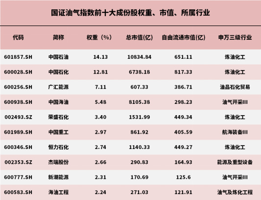 再来算作份股,邦证油气指数的前十大成份股合计占比到达了55.84%,中邦石油、中邦石化和中邦海油等邦行家业油气财富链的稀缺龙头股占比很高,这也直接抬高了这个指数的含金量。