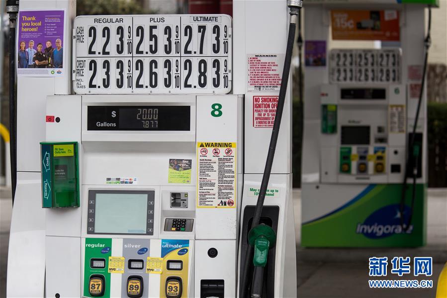 4月9日,正在美邦纽约的一处加油站,电子屏显示油品价值。新华社发(郭克摄)