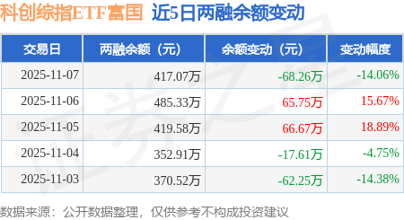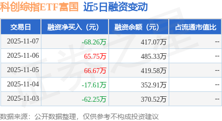 以上内容为证券之星据公开信息整理证券之星行情证券之星讯息,11月7日,科创综指ETF富邦(589600)融资买入49.78万元,融资清偿118.04万元,融资净卖出68.26万元,融资余额417.07万元。