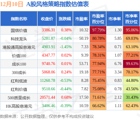 注:各分类指数市盈率、市净率估值百分位按绿-黄-赤色阶吐露,绿色区间吐露所处估值百分位较低即存正在低估能够,赤色区间吐露所处估值百分位较高即存正在高估能够,黄色区间吐露此刻估值适中。